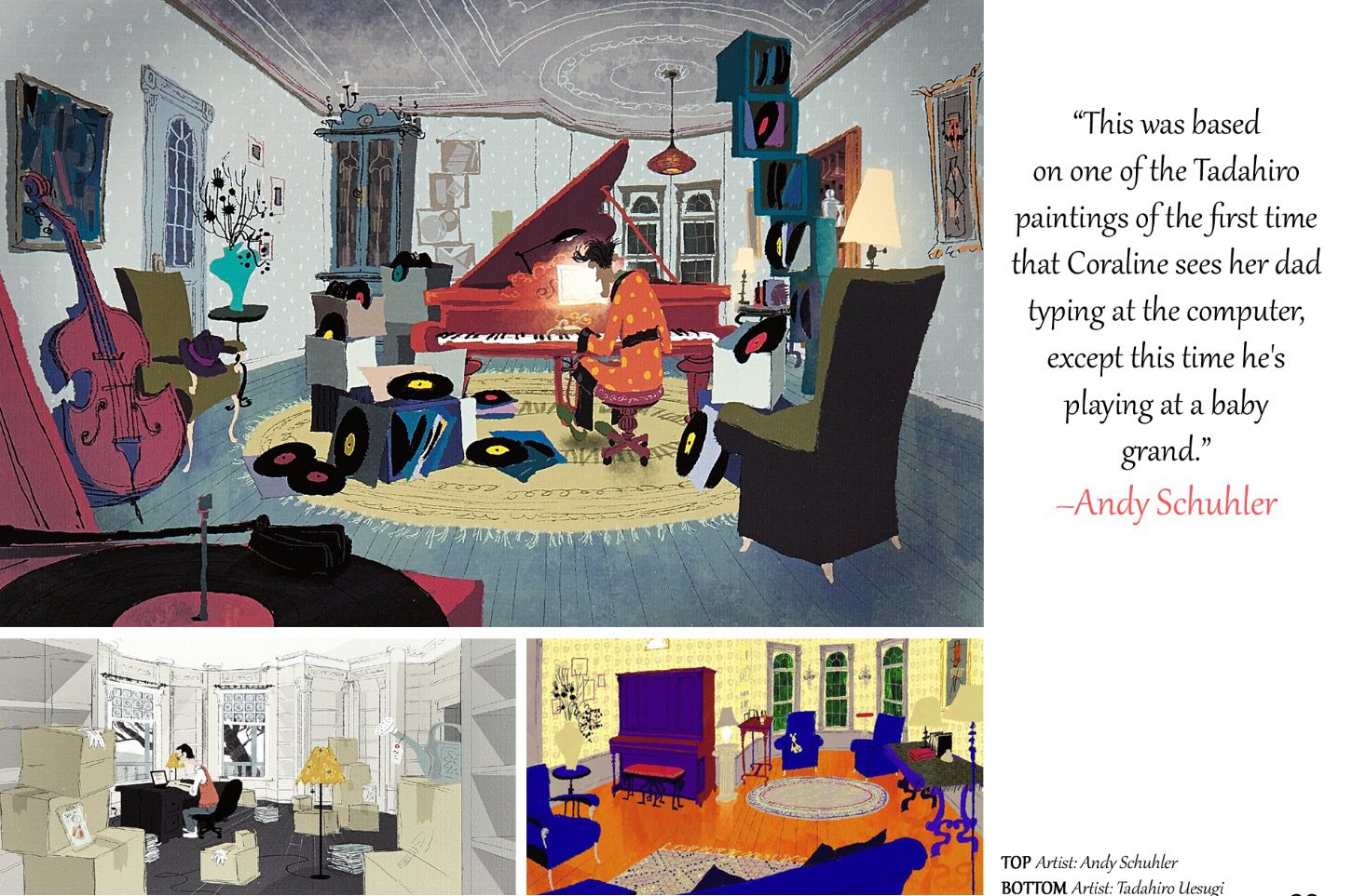 - طراحیهای اولیه شخصیتها مانند کورالاین، والدین دنیای موازی و شخصیتهای ترسناک مانند Other Mother.